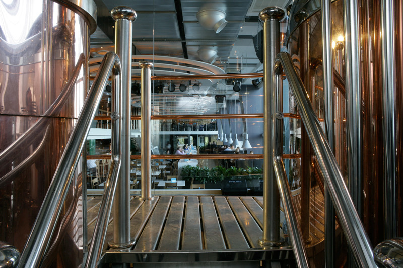 Ресторан-пивоварня Набережная создан для любителей настоящего пива. Варят напиток тут же – цех можно увидеть из обеденного зала. Всего в меню 5 сортов собственного пива.