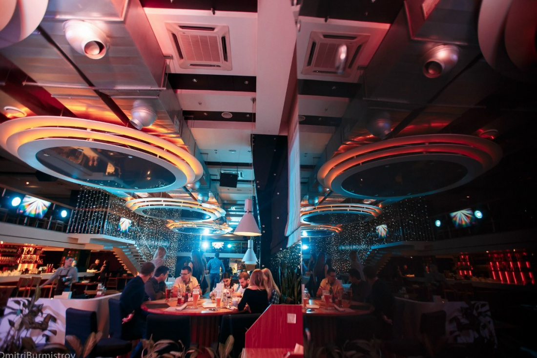 В помещении два этажа с большими залами, где в общей сложности могут находиться до 400 посетителей. Интерьер современный, минималистичный. По пятницам и субботам играет живая музыка.