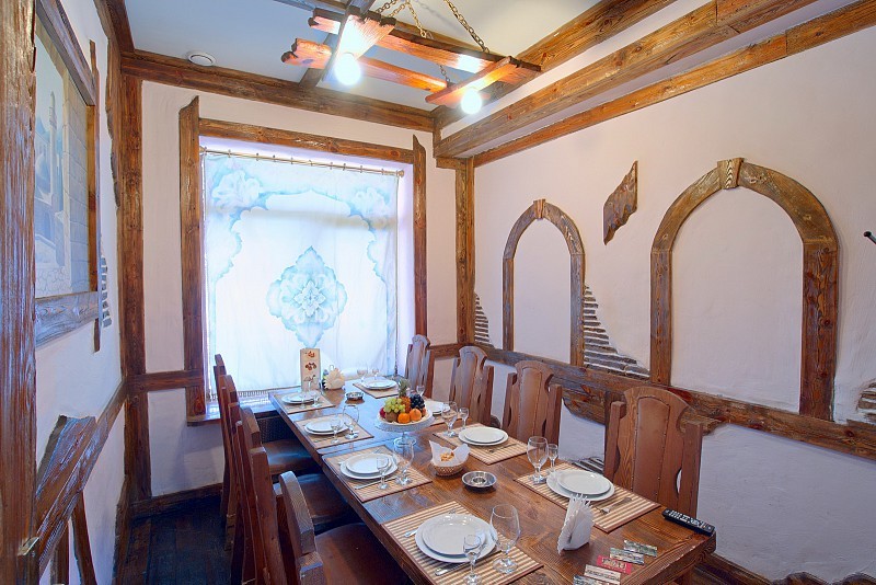 В ресторане подают старорусские, восточные, кавказские, европейские блюда.