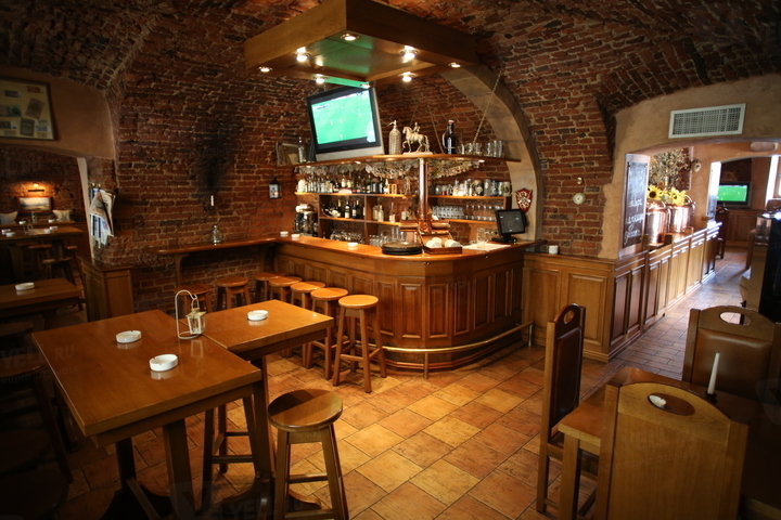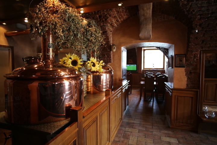 Классическое помещение со светлой мебелью и сводами, отделанными кирпичом, разделено на барный и ресторанные залы. Летом открыта терраса с видом на набережную. Под живую музыку можно оценить закуски, рыбные и мясные блюда, из напитков – сезонные сорта от главного пивовара.