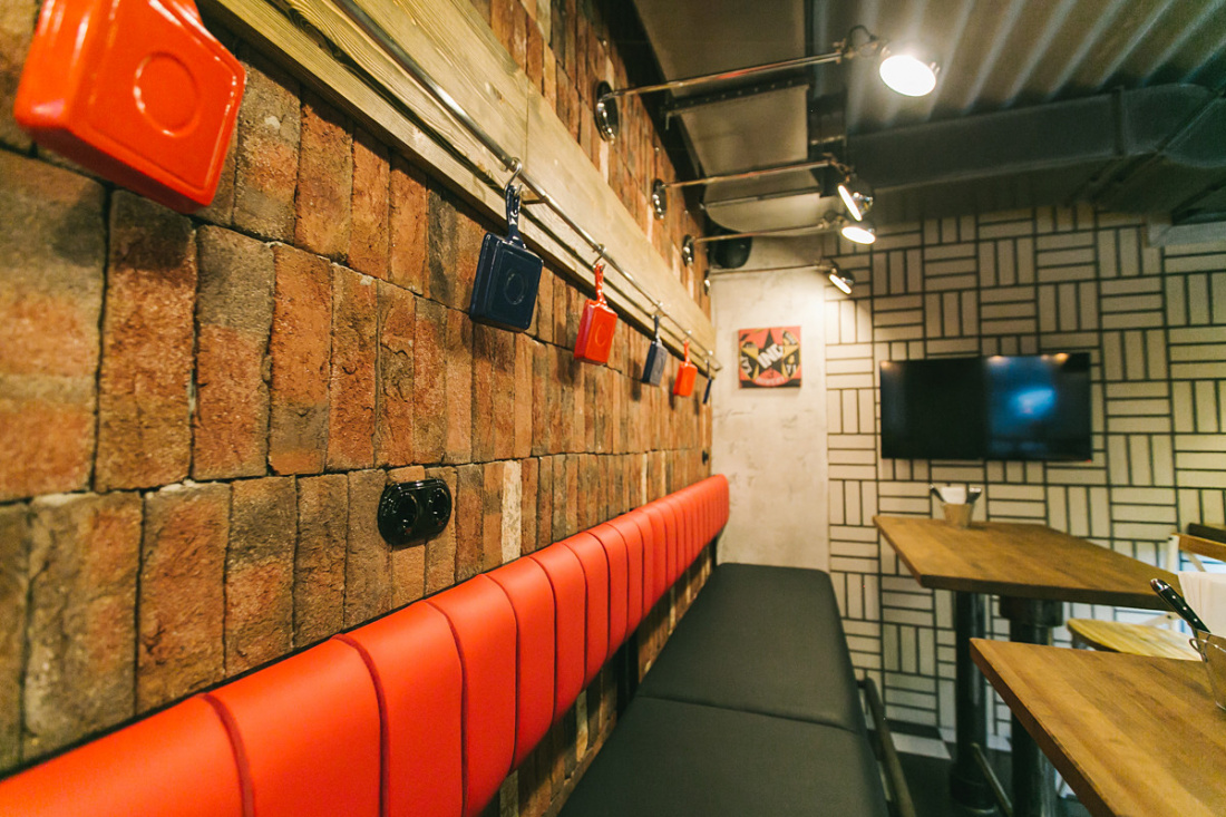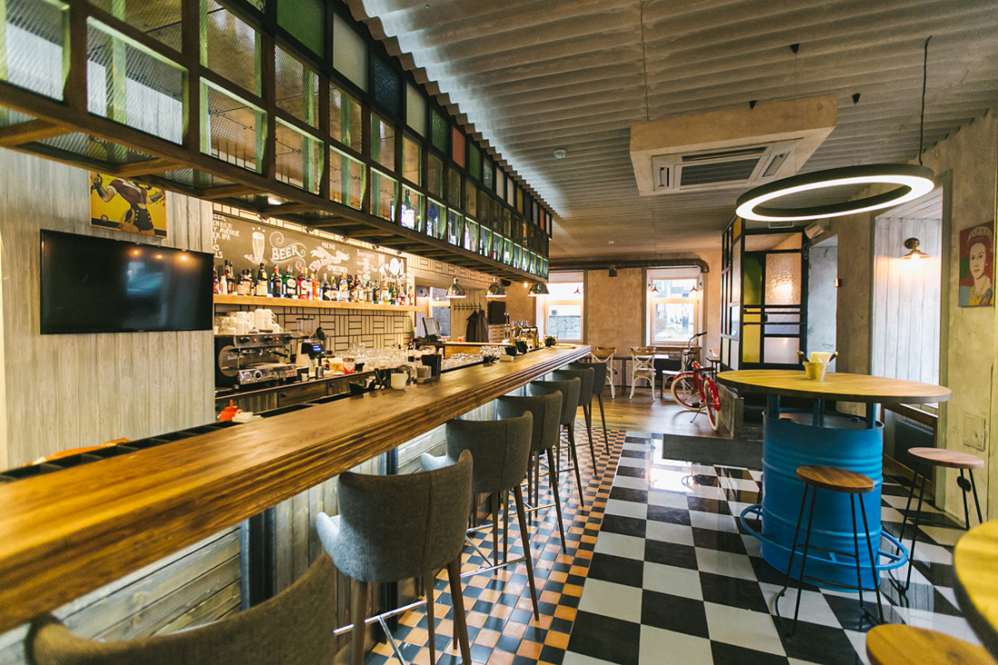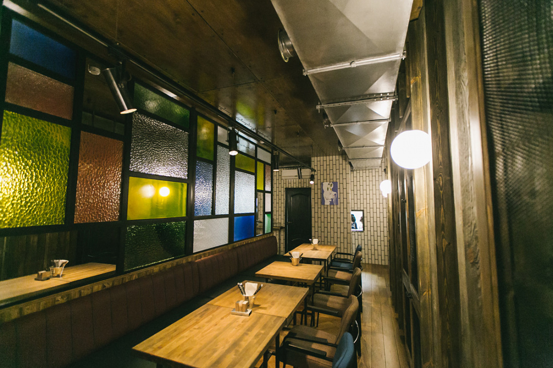Интерьер выполнен в спокойных коричневых и бежевых тонах с мягким уютным светом. В заведении по выходным регулярно проводятся караоке вечеринки, а в будние дни гостям предлагают различные варианты бизнес-ланча. Кроме того, в гастробаре проходят спортивные трансляции.