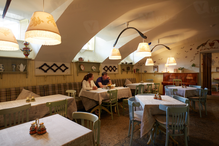 Пельмени и вареники, домашние котлеты, сельдь под шубой, борщ и щи - всё блюда на русский лад. Есть детская комната с игрушками, а также самые маленькие гости смогут поиграть с живыми кроликами. По вечерам здесь играет классическая и джазовая музыка.