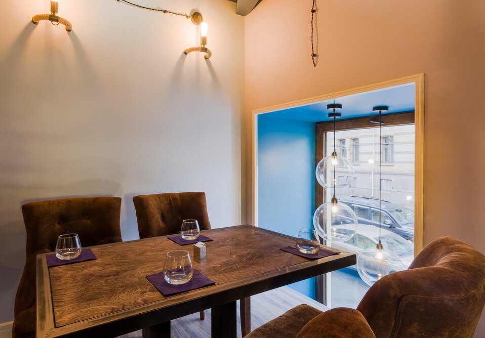 Основная концепция — геометрия вкуса в новых формах. Гости часто заказывают паштет из куриной печени, тартар, сочные стейки, краба и много другое. Для посетителей с маленькими непоседами есть детские стульчики и наборы для рисования.