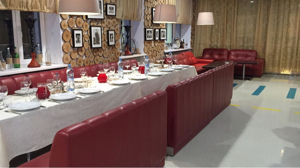 Площадь ресторана отлично подойдет для празднования небольшого мероприятия. Стены ресторана декорированы деревянными срубами, а гости заведения смогут расположиться на красных диванчиках, как в придорожных американских кафе. В рабочие дни сюда можно зайти на сытный бизнес-ланч.