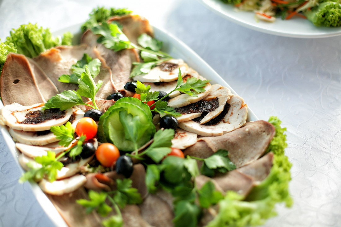 Повара предложат канапе и тарталетки, домашние соленья и ассорти из мяса, рыбы или овощей, стейки из лосося или медальоны из говядины. Также предусмотрены банкетные блюда: поросенок, фаршированный гречневой кашей, гусь с каштанами и клюквой, утка с яблоками, окорок фламбе или судак. Имеется обширная барная карта и большой выбор прохладительных напитков.