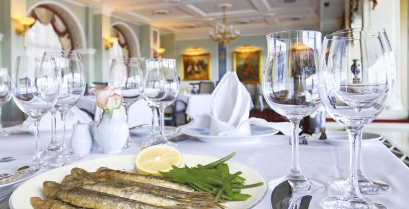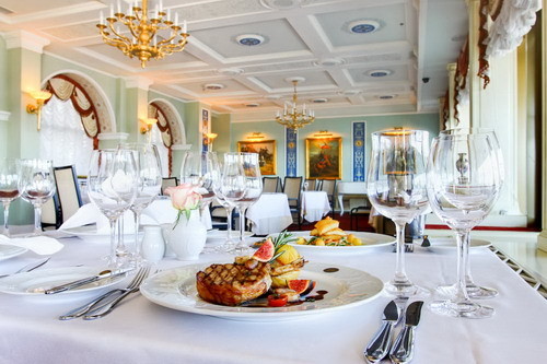 Пафосный интерьер насыщен светлыми тонами. В будние дни проходят бизнес-ланчи. Также можно воспользоваться услугами беспроводного интернета вай-фай.