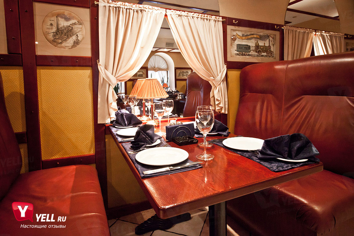 Замечательный Питерский ресторан Восточный Экспресс погрузит посетителей в удивительный и романтичный мир поездок на поезде. Стиль интерьера у данного кафе заимствован у вагон-ресторанов. Основной зал похож на вагон старинного европейского поезда. Тут есть небольшие кабинки с мягкими диванчиками, белоснежные занавески на окнах, старинные столики. Барная стойка очень напоминает вокзальную кассу. Если пройти в соседнюю комнату, то там будет буфет, который сделан в более демократичном стиле и в котором пониже цены. Данное заведение выберут все любители стиля ретро, который так мил.
