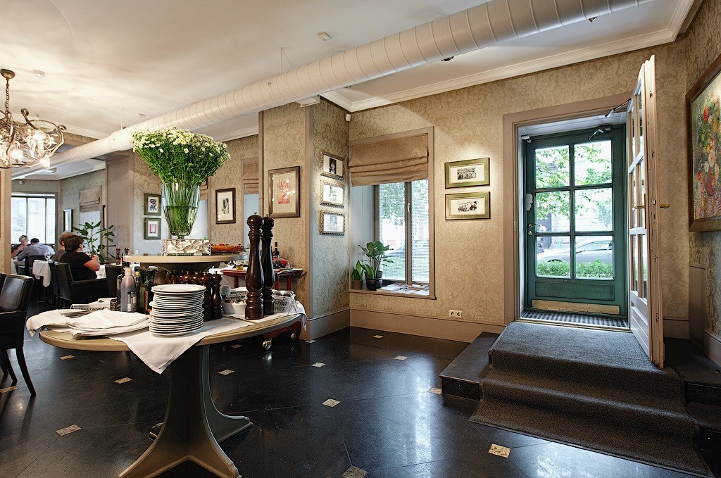 В теплое время года можно занять столик на уютной открытой террасе, утопающей в зелени и цветах. Приятное впечатление оставляет и интерьер ресторана, выполненный в классическом стиле.